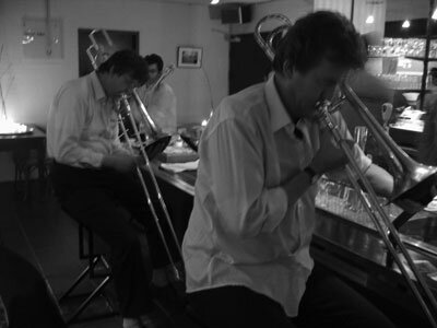 'Bar Among Us' is a surreal musical conversation, unexpectedly in the bar, suddenly sitting next to you. It’s a insitu musical experience that abstracts, comments and exposes typical communicative structures. The performance took place in a bar, where the musicians were seated among the visitors with their instruments as their voices; trumpets chattering amongst themselves, trombones mumbling at each other, saxophones seducing and a lonesome player in the bathroom. The bar is filled with clouds of communication. Each visitor has his own role; theatre-addictive, eternal student, would-be or past lover, local fool, habitué, soaker, bachelor, seducer or wrong friend. Every encounter takes place in a well-known environment which is alienated, where ordering a drink, or seating oneself at a table is deprived of its commonplace, but nevertheless unexpectedly appealing.